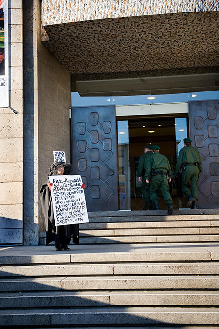Demonstrant vor dem Stuttgarter Rathaus