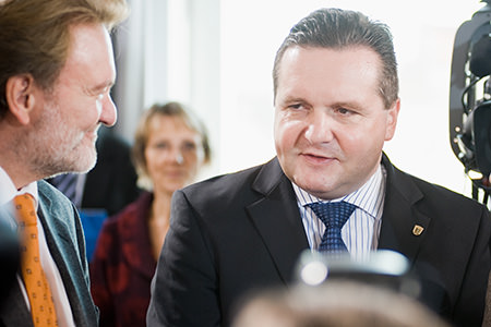 Boris Palmer begrüßt Stefan Mappus und OB Wolfgang Schuster